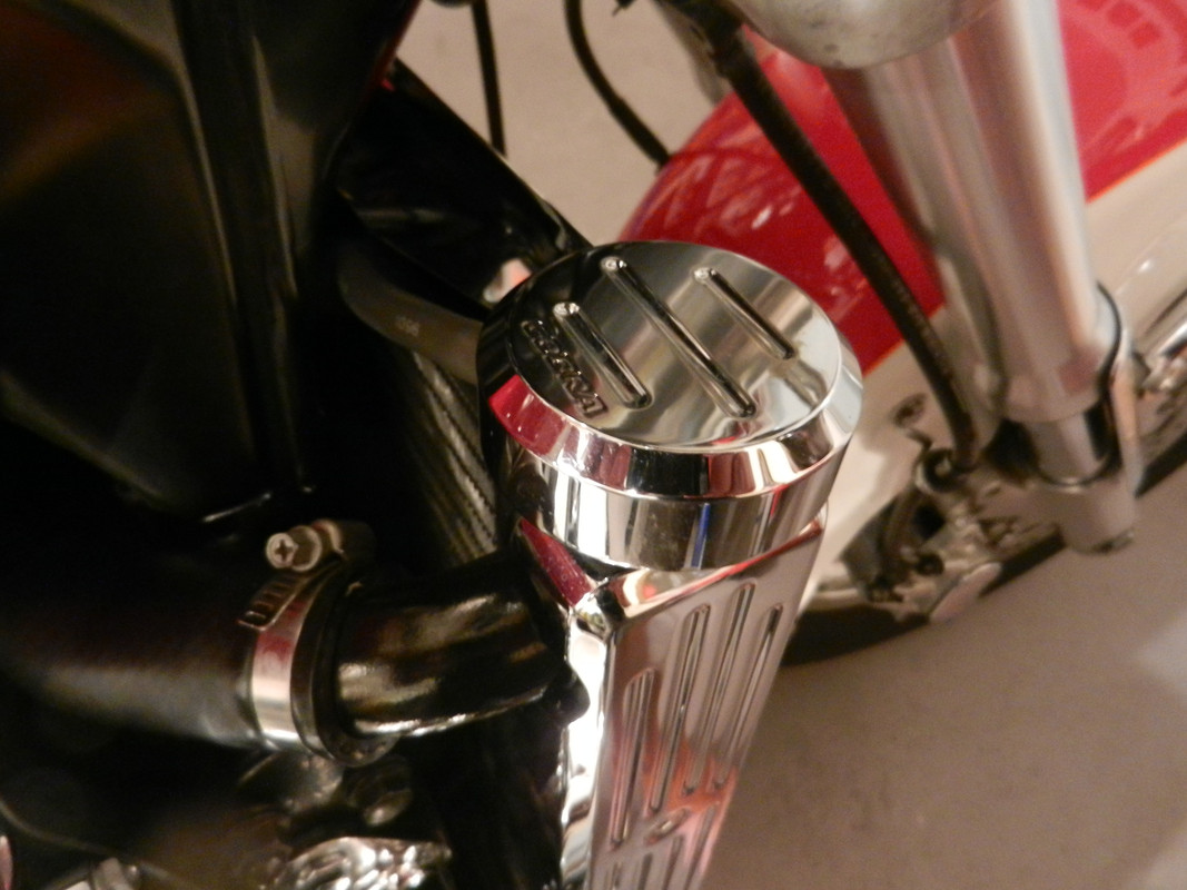 Also, one particular radiator cap chrome cover was known to make the OE cap leak when the set screw was cranked down.  I believe the Show Chrome/Big Bike Parts cover.  If the radiator neck lips are bent (like from a cover set screw), they can (very carefully) be straightened.