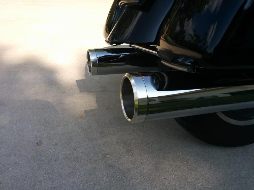 Hey guys and gals Just wanted to show off my new exhaust tips, compliments of some fine fabrication by Grumpy. Thanks Bill, u tha man bro     Me likes Hey Jack they look awesome. When I saw them in Leesburg on your bike, the larger diameter opening actually makes your pipes appear larger. I like them better than mine  You have a nice one of a kind look, now everyone will want them