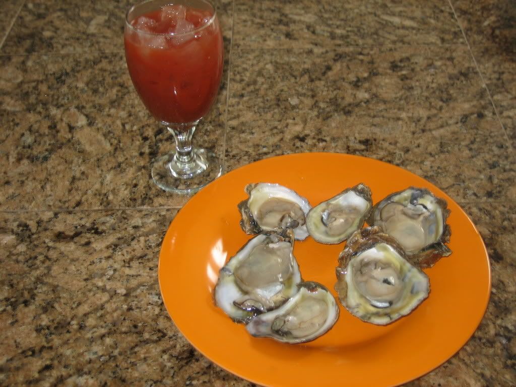 Breakfast of Champions. Bloody Mary and half dozen raw. Shucked those myself--they were fresh.