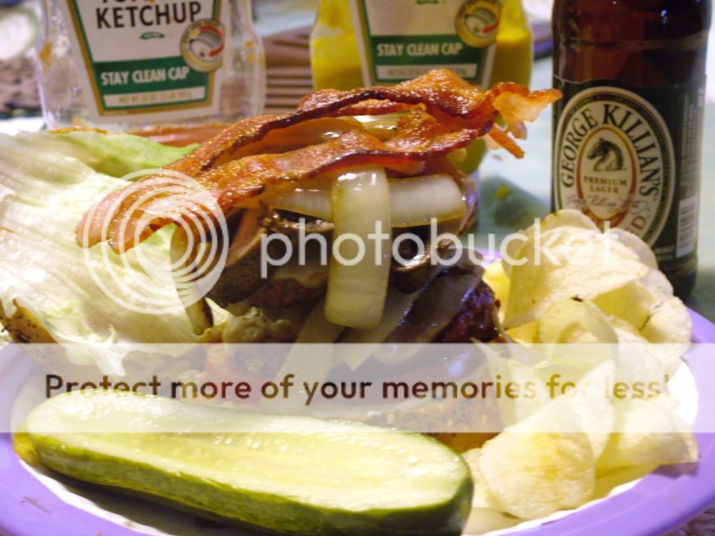 .....Dreamaker....thats one of my burgers....now you can see why our friends call em .....BAB,s.......Big Azz Burgers !  .....Dont forget our Q in de Woods Saturday on Memorial Day Weekend ! ,,,Were giving free stents with every burger this year ! ..  You defiantly make one Bad Boy Burger, never be hungry after that one.