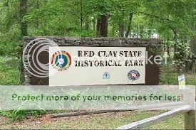Big Al, and Popcorn (Don) rode to my neck of the woods today for a visit. It was a beautiful day with a high of 67. We ate at my favorite meat & 3, then went on a ride through my local hood. I took them to Red Clay State Park. It is located just north of the TN/GA state line. Red Clay was the last council meeting place for the Cherokees, It was moved here from north Georgia, when Georgia forced the Cherokees out of that state.