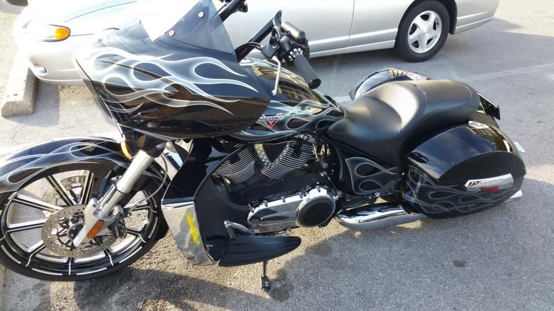 This might just do it. Saw this bike for sale today. The price was waaaay more than I'd ever spend on it, but it was pretty. Victory Cross Country....supposed to be with a bunch of options on it.    Not a Cross CountryThat Victory is a Magnum