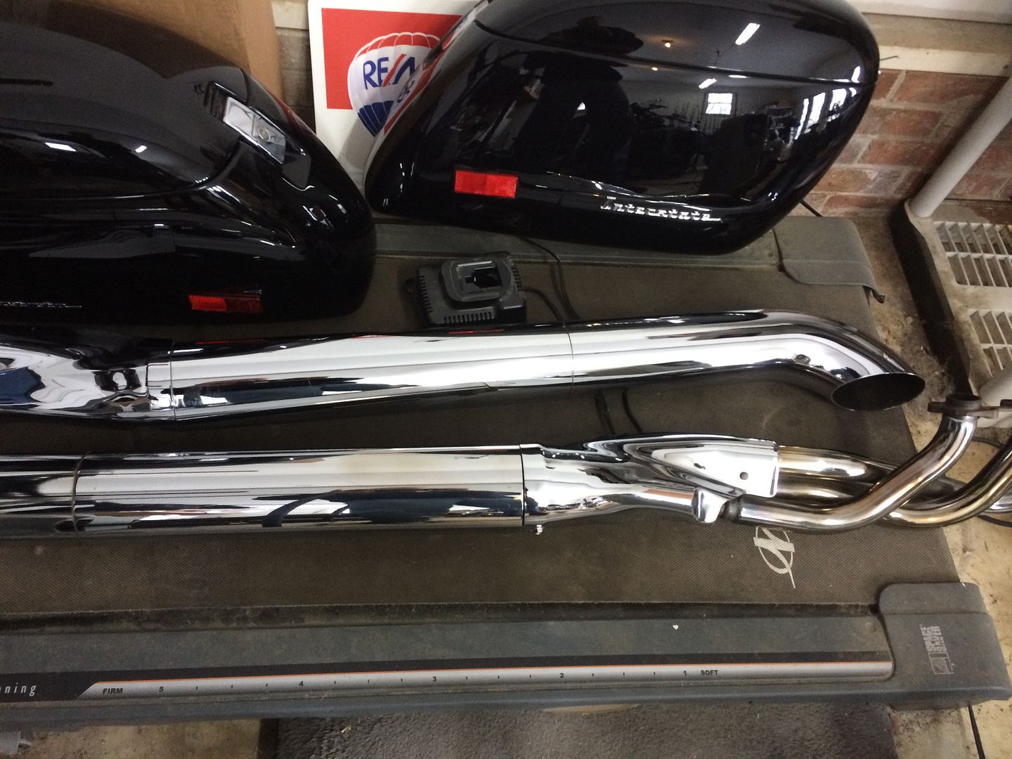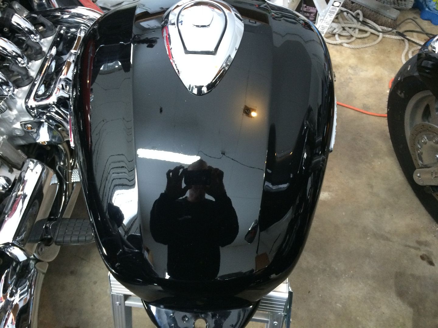 Indybobm: Most if it was cleaned good and then done with fine cut cleaner, and then swirl remover and finished with yellow wax. The tank and the saddle bags were beat up a little so I touched up the scratched areas with some 2000 grit wet paper and then went over it with the medium cut, then fine cut cleaner, then swirl remover, and then for the tank I also hit it with machine glaze, and then yellow wax on both.