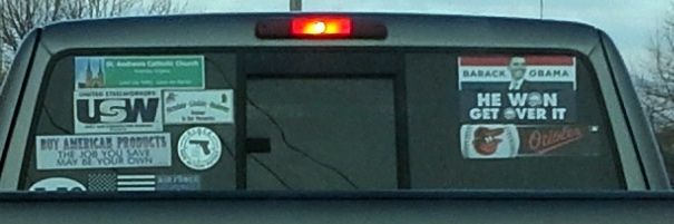 I'd Divorce My wife before I'd let her put an Obama sticker on my truck. I feel the same way. I allow only one sticker on my truck, a destination sticker, HELL . Some folks don't understand it.