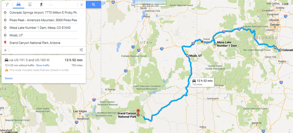 So, it looks like we will fly into Colorado Springs, and drive from there. She isn't a fan of pointless driving. I figure we will start with something like...