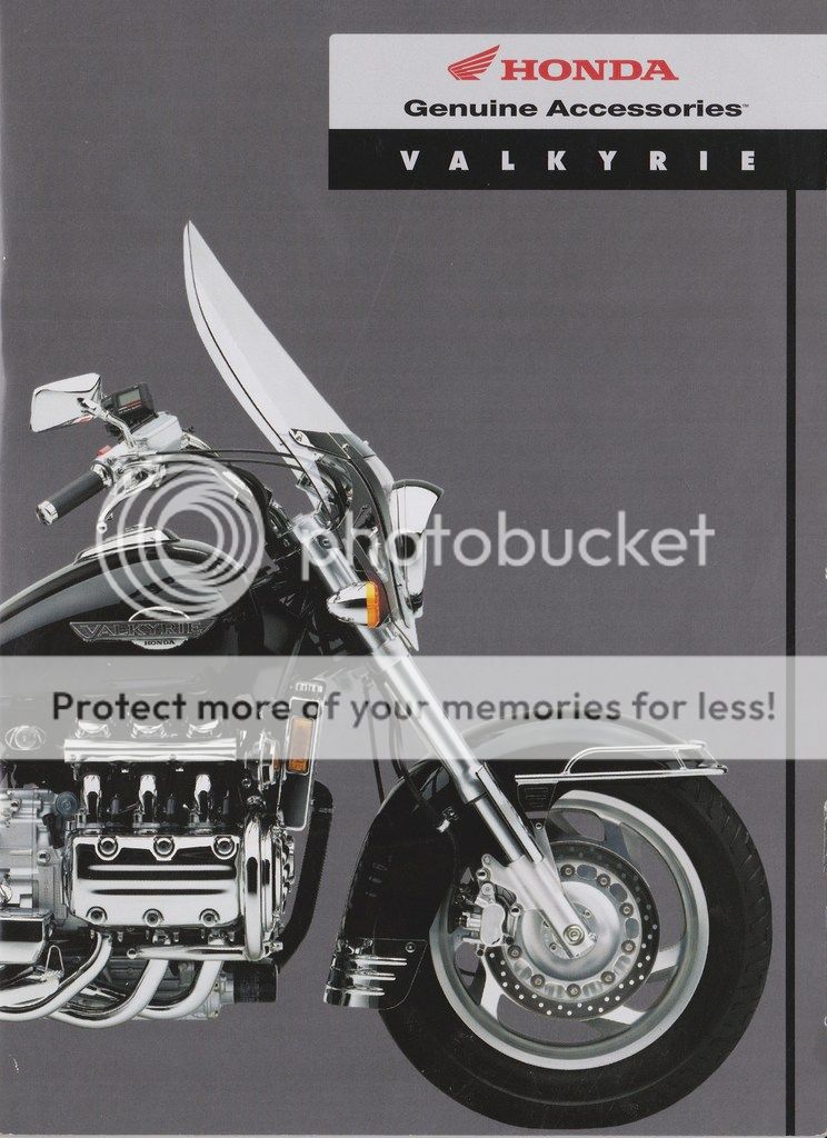 I scanned an original Valkyrie accessory brochure tonight. It's filled with pictures and even prices of every accessory made by Honda for our Gen 1 Valkyries. Can I use that term? The link is to my Google Docs and anyone can download the pdf. If you view it using Adobe Acrobat it will display exactly like the original brochure with two pages side-by-side. I know that most of us have seen all these accessories but it's fun to see them all in one brochure. Clearly, a major sea change at Honda has happened since our Valkyries were introduced and I feel quite certain that we'll never see this level of manufacturer participation in OEM customizing options ever again. Enjoy!