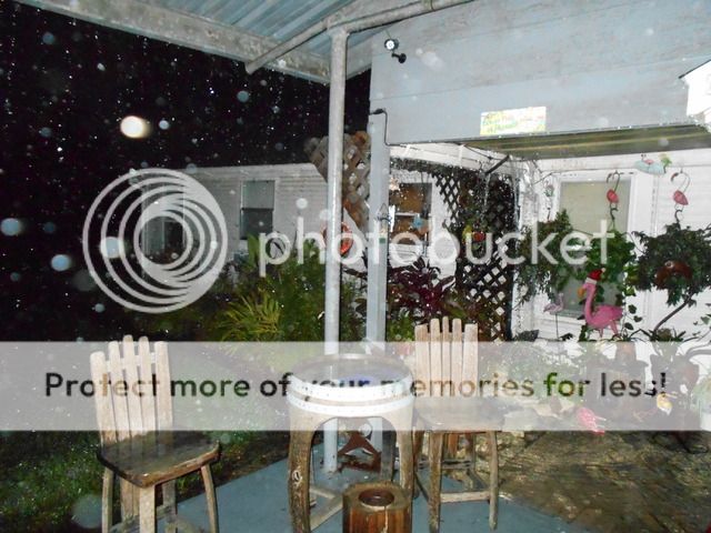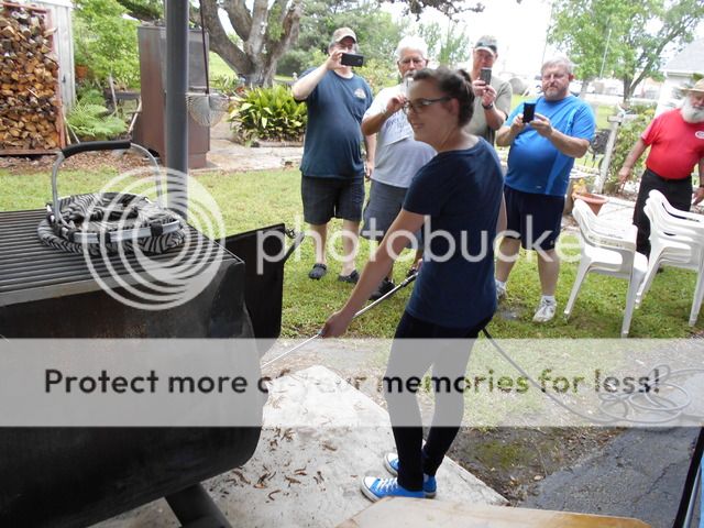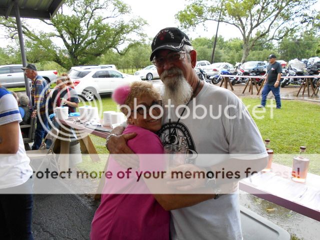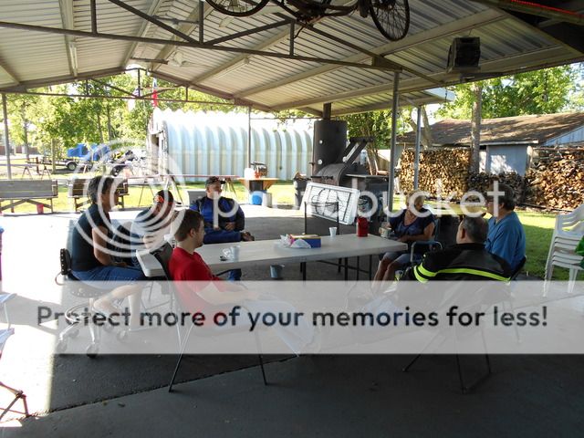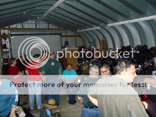 After everyone ate, the weather came in. BOY HOWDY!!!!!!! It was one heckuva gully washing frog floater. Rain was blowing sideways with 40-50 mph winds - then the hail hit and lighting was flashing everywhere - a wonderful light show of nature! It was a frog floater though. Then lightning took out the electricity. Awesome storm! I was starting to try and figure out how big a cubit was.....just in case.....it was blowing straight through the awning, so most folks took shelter in the shop. It was a very impressive storm - no doubt.