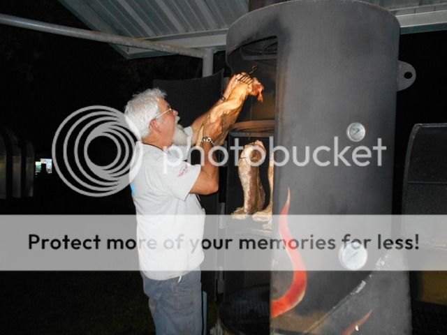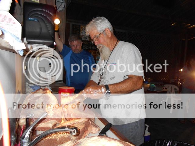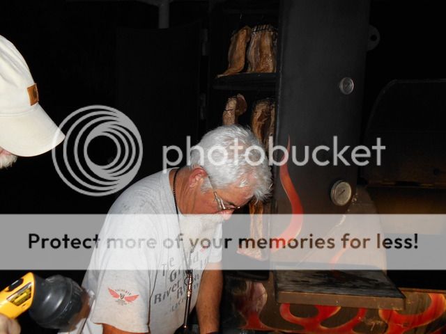 And HG played with his meat.....the 20 or so briskets to go in the smoker that is..by flashlights.....
