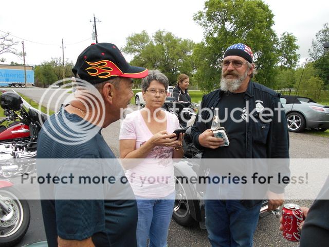 Well, on Wednesday, Bonnie told me, why don't you ride over today and miss the weather and enjoy your friends - it has been a long time and you deserve it. Either that or you can help me paint the trim in the bathroom - "Ok baby!" "I know the bathroom is important to you..........so,...........call me and let me know how it comes out!" WHOOOO-HOOOOOOO!