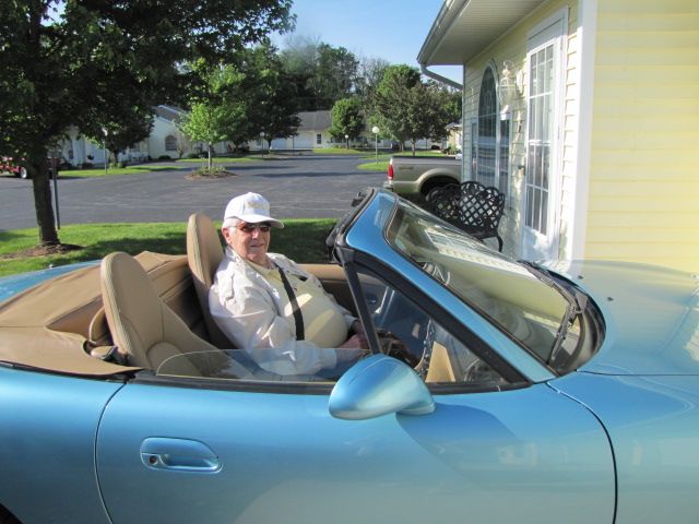I don't think it is just age getting in and out of most of today's 4 cylinder cars. Most sit so low and such a raked front seat roofline that you have to duck your head just to get in/out and I'm only 5'10" tall. Now on the Miata, head ducking is not an issue since NO top is needed which is nice, just the lowness of getting in and out. Your sure do look good in that Miata and if it makes you smile, that is all that matters, you being happy.  After 87 years, you surely deserve it.