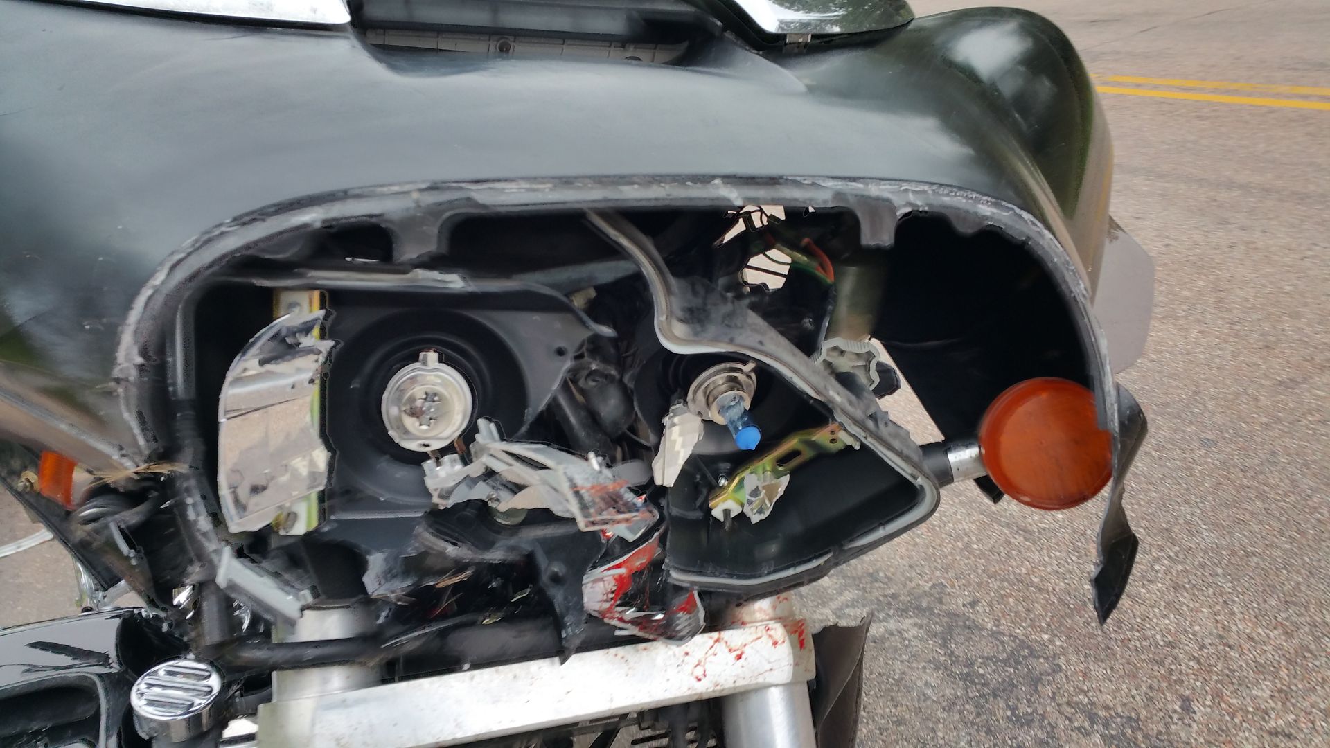 I surely hope you can get the bike repaired and straightened out for say 3-5 grand and not be a total loss since seems to be still driveable for the most part. Best of luck with your insurance company. The one time you need them, I sure hope they do the right thing and let you do what you want done and get repair paid for with no hastles. Good luck!