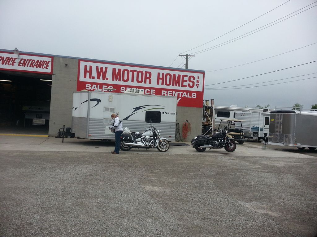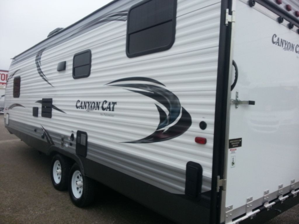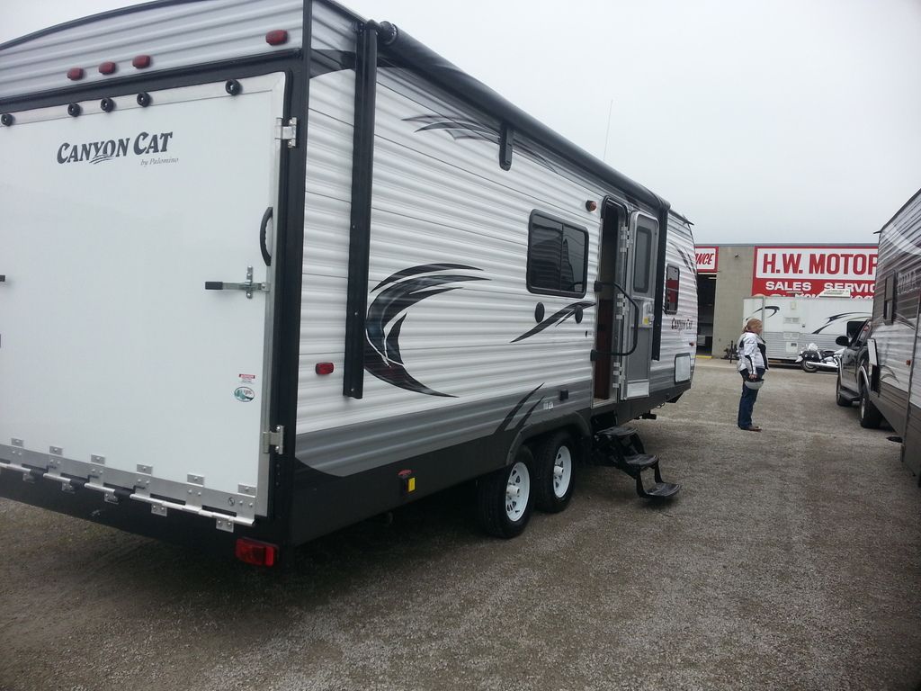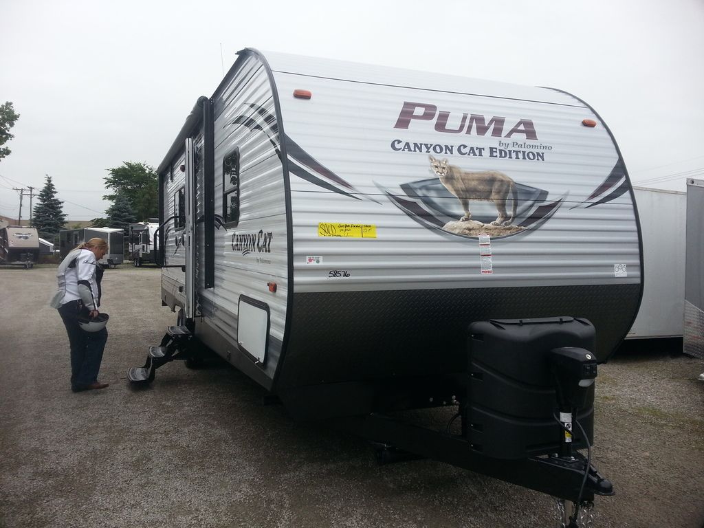 Last weekend we had our final camping trip with our old toy hauler (ABATE State Field Meet) and it RAINED!!!!! Bittersweet as we will no longer be using our old and beloved Road Master R-Sport toy hauler. First used in Daytona Bike Week 2009.   Today we took delivery of our new 2016 Canyon Cat toy hauler. The very first (documented) 2016 off the production line.     And the best part is it is PAID IN FULL!!!.