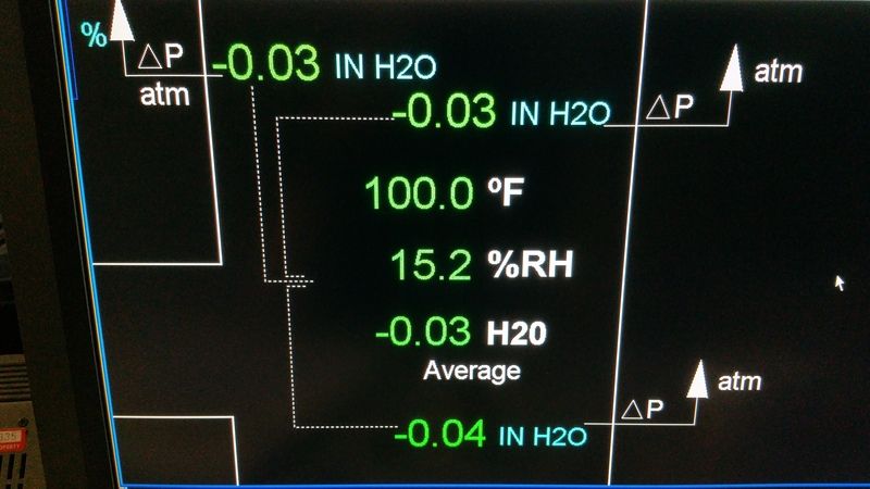 Wrong assumption. That's reading the barometric pressure from outside. The chamber pressure is measured with an old fashion manometer measuring inches of water column.....  And also with instrumentation....  The chamber does go negative (and positive) from time to time....however, we can correct that. However, with better than a 160* difference from outside temp to inside temp, the chamber does go negative. That's a pretty good inversion from outside to inside. Think of an empty plastic water bottle that you put in an ice chest.....and watch it suck it's sides in. Same thing happens to our chamber.