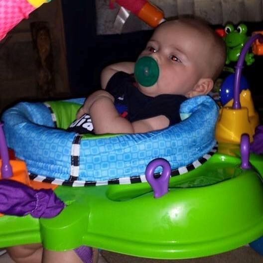 Just change out the "binky" for a cigar and the bouncer for a recliner, and we are twins!