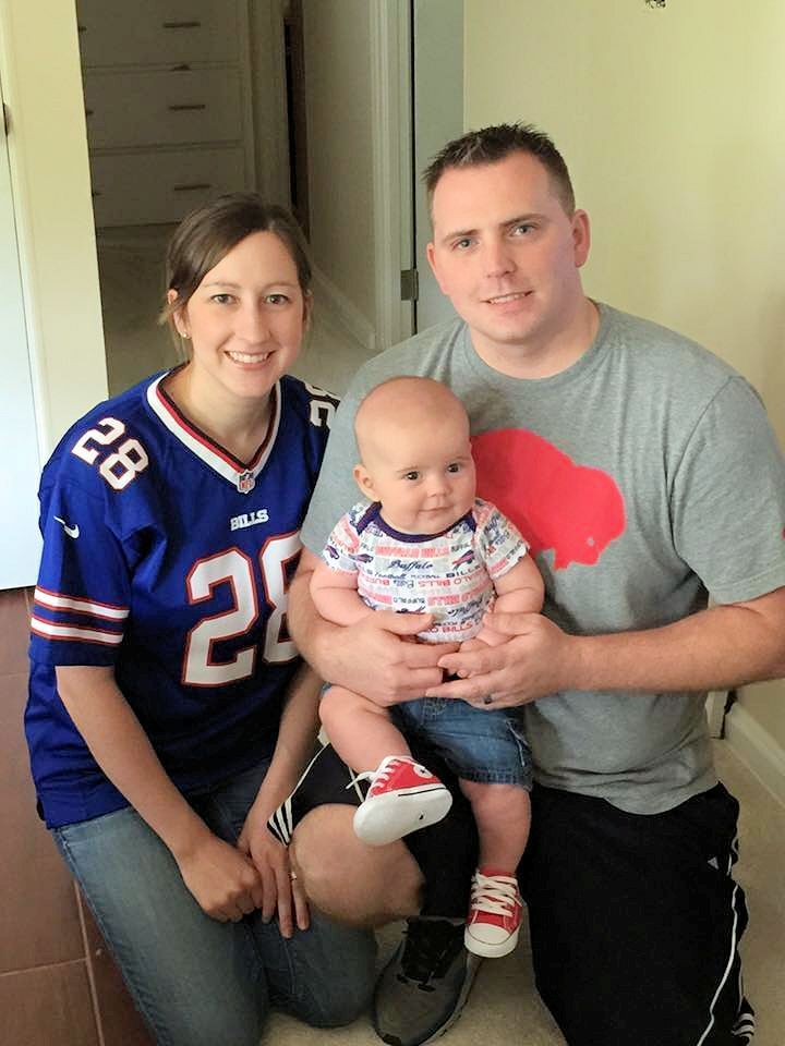 The happy family at our Fantasy Football draft (both Dad, Michael and Mom, Sara, play).... even though they are raising him a Buffalo Bills fan.....