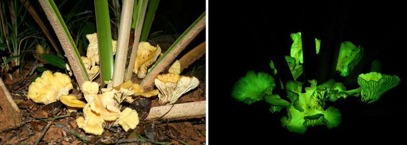 I found an article on this. Interesting quote: Making light isn't actually all that common in fungi — scientists have described about 100,000 fungal species, and only 71 glow.