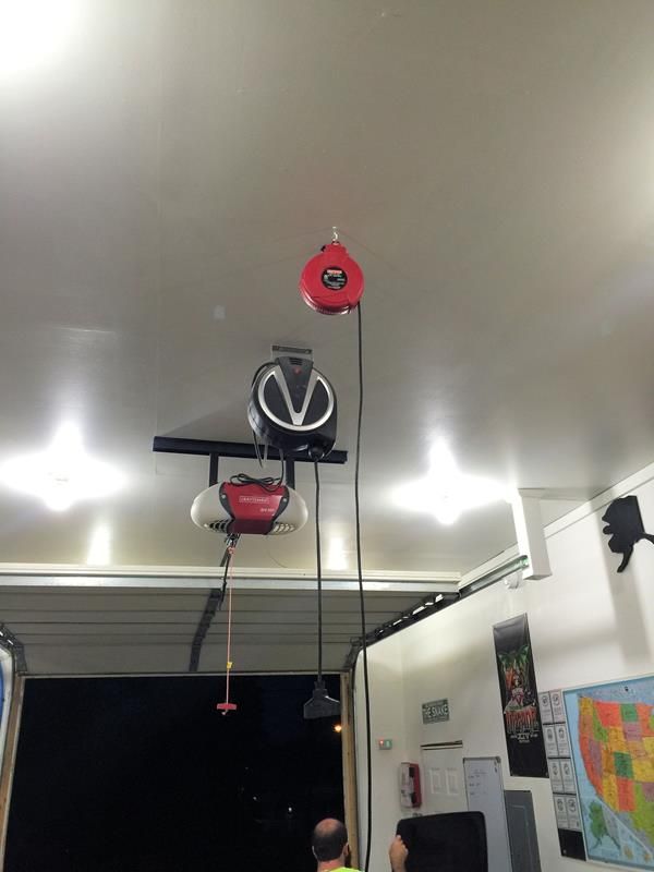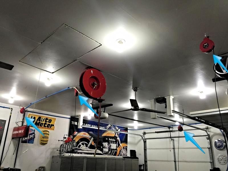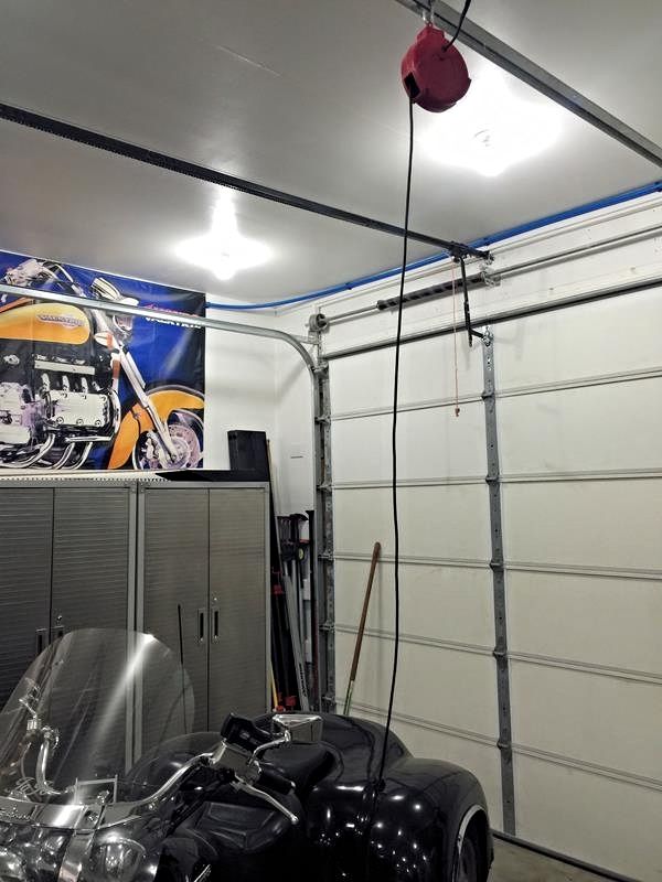 Hung three of the cord reels in a line, one over my table lift, one over the other bay where I park m/c's, one over a workbench (keep the zero turn mower battery in winter), and the last off the garage rail area where I park JoJo's trike.