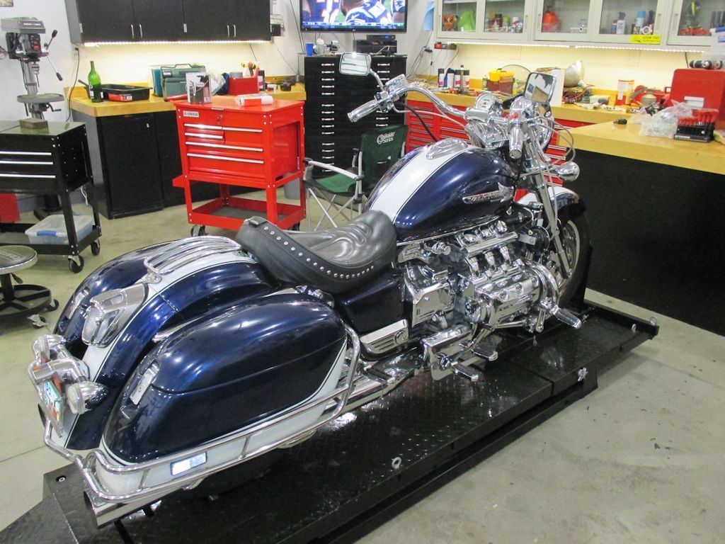 Bill, the bike looks great in its current incarnation, really added some nice touches to the "bling-mobile". Damn, you're making me miss it all over again! But the wife got a really sweet kitchen out of the deal, so it was worth the sale; plus, I really wasn't riding it at all, so I'm very happy that it went to someone who appreciates it and rides it. As to the white LEDS that have become a topic, they only light up with a switch so they are not on all the time and are not tied into any of the regular running/turn lights. I checked Ohio law before I even mounted them, it said nothing about a motorcycle being required to have amber or red reflectors on the sides of a motorcycle. Your state laws may vary. I got them off of eBay. As to my shop... yes that is my pride and joy! Thanks for the nice comments about it. It was over a year to get it built and exactly how I wanted it. Spend a lot of time out there and it makes for a fine working platform for the Valks. In fact, right now i ave two of them (mine and Yeah, Just Dale's) in various stages of serious winter maintenance. Makes for a fun and interesting winter, waiting for riding season to get here. Here are the threads about my build if you haven't seen them and are interested. Very proud of the work I (and others) did on it. http://www.valkyrieforum.com/bbs/index.php/topic,48033.msg458083.html#msg458083http://www.valkyrieforum.com/bbs/index.php/topic,50638.msg483631.html#msg483631http://www.valkyrieforum.com/bbs/index.php/topic,52228.msg499472.html#msg499472http://www.valkyrieforum.com/bbs/index.php/topic,52898.msg506372.html#msg506372http://www.valkyrieforum.com/bbs/index.php/topic,53556.msg513348.html#msg513348http://www.valkyrieforum.com/bbs/index.php/topic,53983.msg517443.html#msg517443