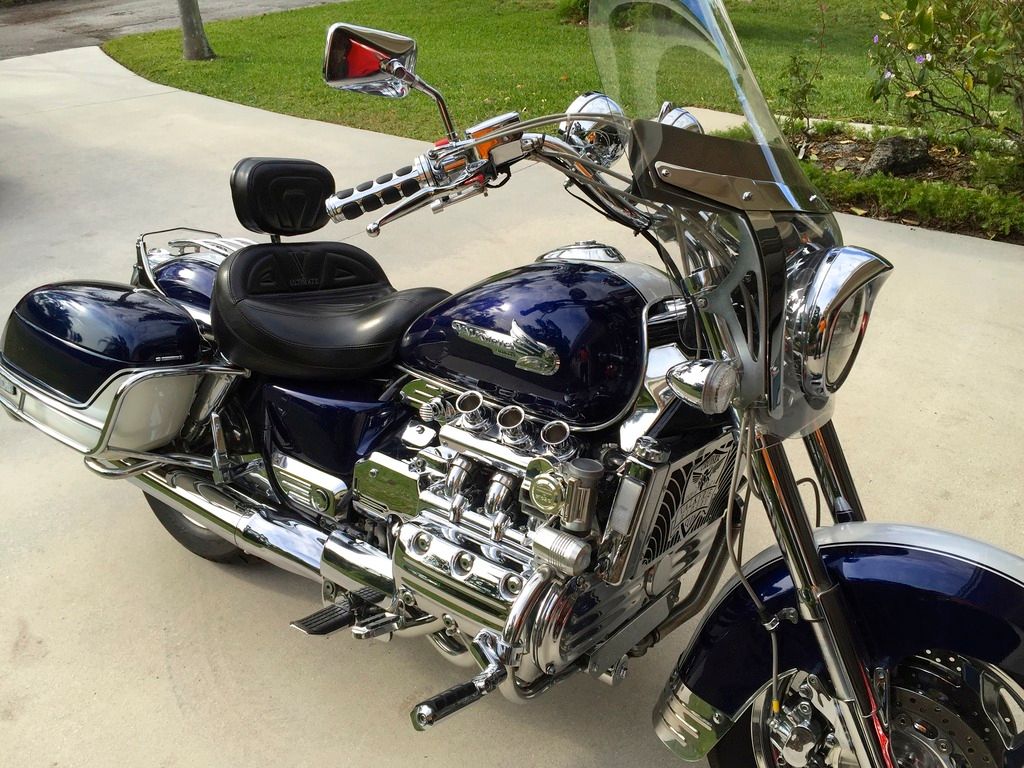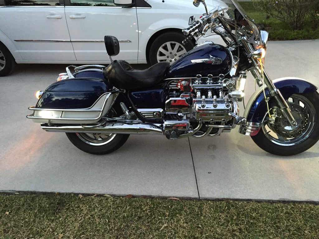 I bought this beauty from PTGB about 1 1/2 years ago. She was a looker, loaded with chrome, including the front end and wheel, a sassy paint job, and some nice touches.  So, never satisfied to leave well enough alone, the mods began,changed out the exhaust for a set of stockers with triple tips ,put on the Hondaline full windshield,halogen bulb in the headlight, pulsating led's in the rear,Cree running lights, Kuryakyn grips and breakaway cruise control,Uniq Cycle speakers with bluetooth,peg lowering kit with new highway pegs,Ultimate seat w/backrest,velocity stacks and a Stebel horn.  Probably a few things I forgot, but she runs strong and draws some nice comments. It's been a fun time and there are a few more upgrades I'd like to make to her, such as a seat rail and maybe forward controls. It's a sickness, but a good sickness I know, luckily I have a supportive bed warmer so all is well on the home front. "Happy wife, happy life.!"