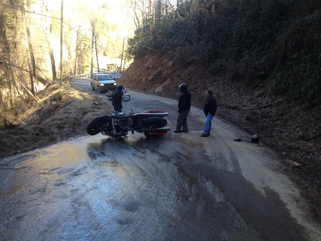 Fellow Hoosier rider went down yrs ago. He said his CT caught a truck rut and he went down.
