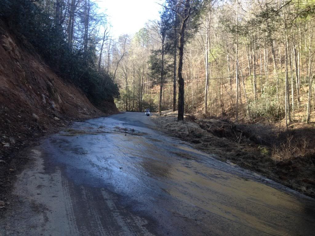 40 to 45 yards of ice... Two bikes down behind me ... I never broke traction and made it....My bike was the only one with a CT.... Car Tire ? Pissie ass luck ?