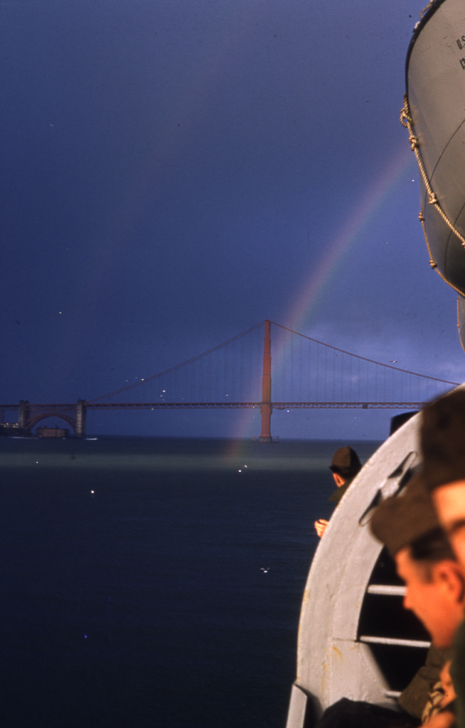 Chow on the carrier at the start of the deployment was fair to so so. We were SUPPOSED to be able to go 3 months on the food aboard with out an unrep. unrep-underway replenishment for you non Navy types. We tried/attempted/took a shot at that 3 month thing!  Bout 2 months along the food went from so so to I Now KNOW the sewage is no longer going overboard!  Wayne-whenever we were tied up in port overseas the American Flag flew at the stern of our ship(s) 24/7. When we were headed back from Hawaii right at 4 days would see us Stateside in San Diego!  U S of A-land of the round eyed females!  I spent a bit of time in the Orient.  RIDE SAFE.