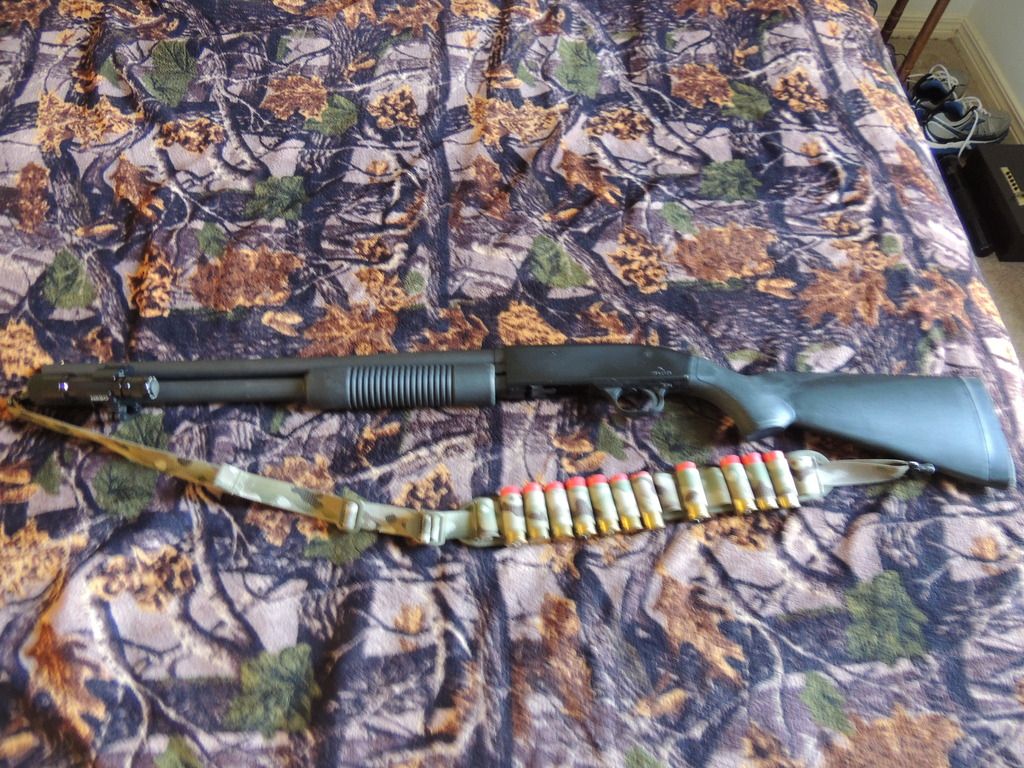 with a pistol grip, NOT a pistol grip alone); not only does it take up some of the recoil off your shoulder with the hand, but if you have to hold someone under arms (and maybe dial 911), the pistol grip makes handling the firearm one handed much easier than with just a buttstock.