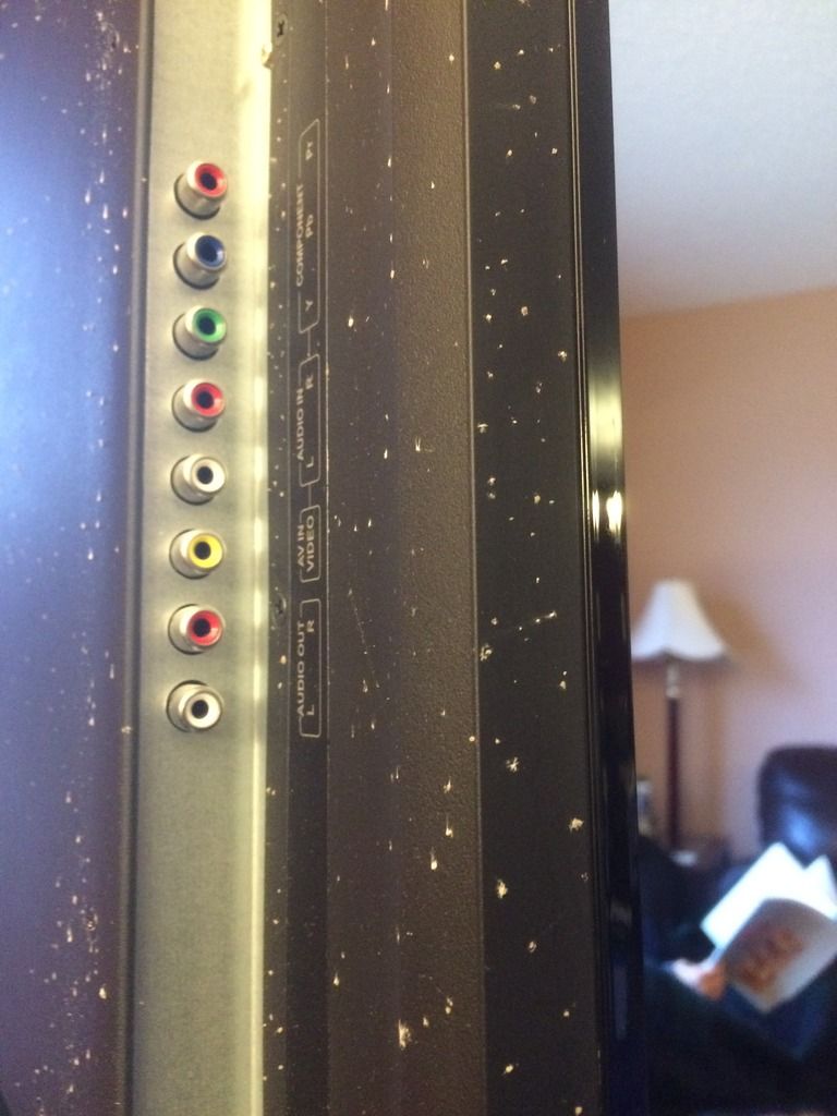 I finally get porn on my TV! Uh... it seems porn isn't quite as exciting as advertised. It must be as suggested, with the plastic leaching some kind of chemical. After doing a little googling myself, it seems a solution is to clean it, then wipe WD40 or ArmorAll on it.