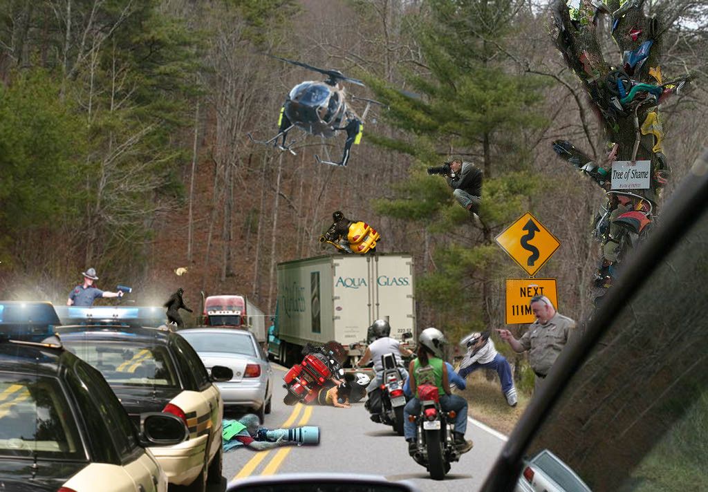 I'd also toss out Fontana Village about ten miles away from Deal's Gap. Not inexpensive, but they have a decent restaurant and small bar. If you're looking for quiet vs the company of fellow bikers where you are lodging this is a place to consider. 10-4 on avoiding holidays and weekends - especially if it is your first trip so you can get the most out of your runs on the Dragon. Smile for the cameras!