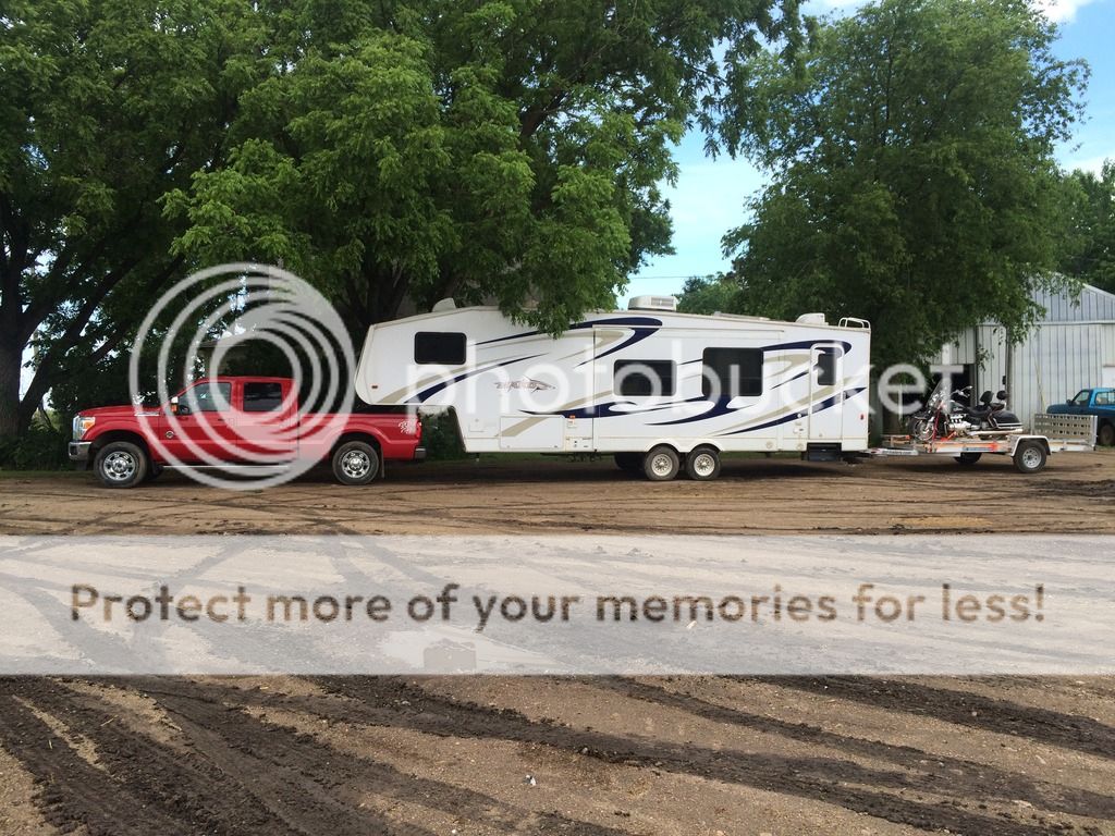 5th wheel toy haul would be my first choice. More convenient/versatile (wouldn't have to disconnect to unload bike, that's a biggie!), easier to maneuver, fits in smaller campgrounds (we really like outta the way places), garage for bike/outta the weather & more secure. It's got alot of +'s but... ya give up quite a bit of livin' space, they're heavier (but that wouldn't matter too much, she's a 7.3 turbo), & considerably more expensive. I've still got my eye out!Love that Loadall system! If we definitely go ramps that one's at the top of the short list.Hey, I have a 3 piece ramp set, I believe they are 9' long and the center section is 18" wide and the 2 others are 12" wide...I will confirm the measurements and send pics if you want.... I WILL MAKE YOU A KILLER DEAL! These were about $450 when I bought them...
