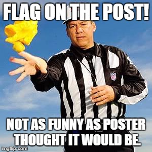 I got the joke. I did not find it as amusing as some might. Well, that let the air out of the humor............. Flag!!! Some one throw a flag..............