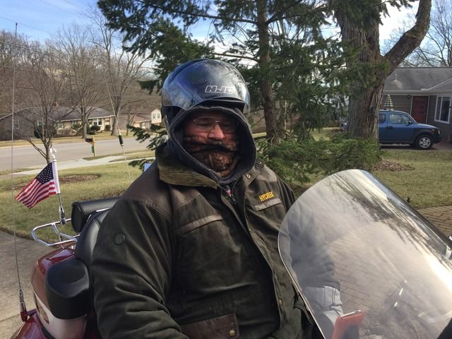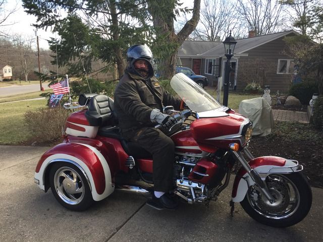 nice bike, looks sharp, one of a kind. never thought I would say this, but with the attire on all bundled up, that large Valkyrie trike looks almost too small for you? For sure the best trike I have seen by far. enjoy the ride, for me will wait until end of March, although heard rumors in another week or so might hit 49 degrees which is unheard of in February this time of year...