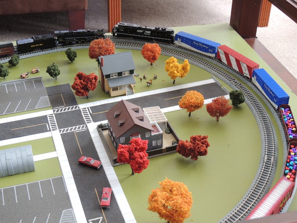 I made a stand off N scale of the local Railroad with scale models of the Norfolk Southern diesel and also 765.  Here's a pic