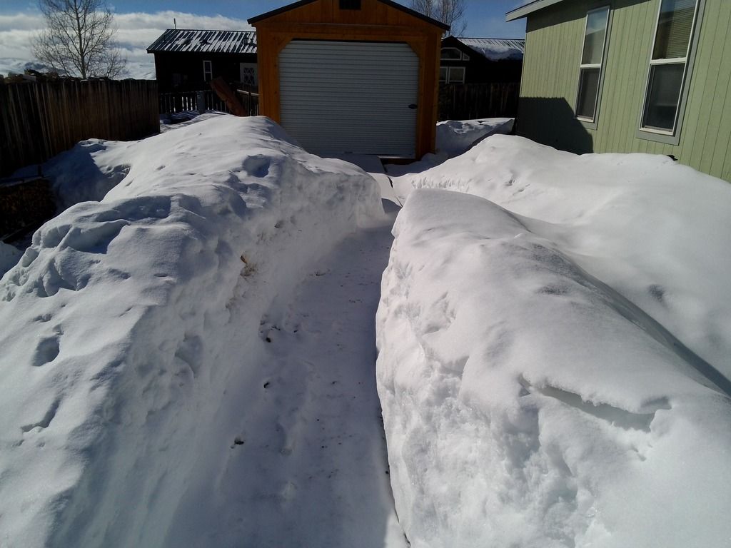 Well I don't know where the heck this Earnest place is, but winter never left in Gunnison.  Just snapped this with my tablet. Looks like snow but it's nearly three feet of compressed ice, hard as a rock.  My bikes are held captive inside the garage. I may need to purchase a flame thrower to melt those glaciers this spring! And more snow coming tonight and tomorrow...