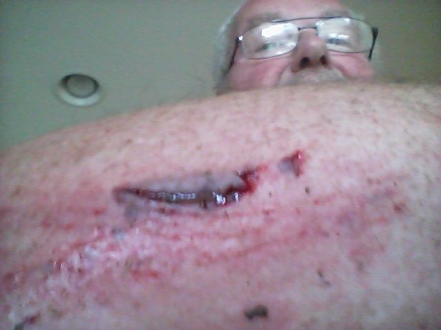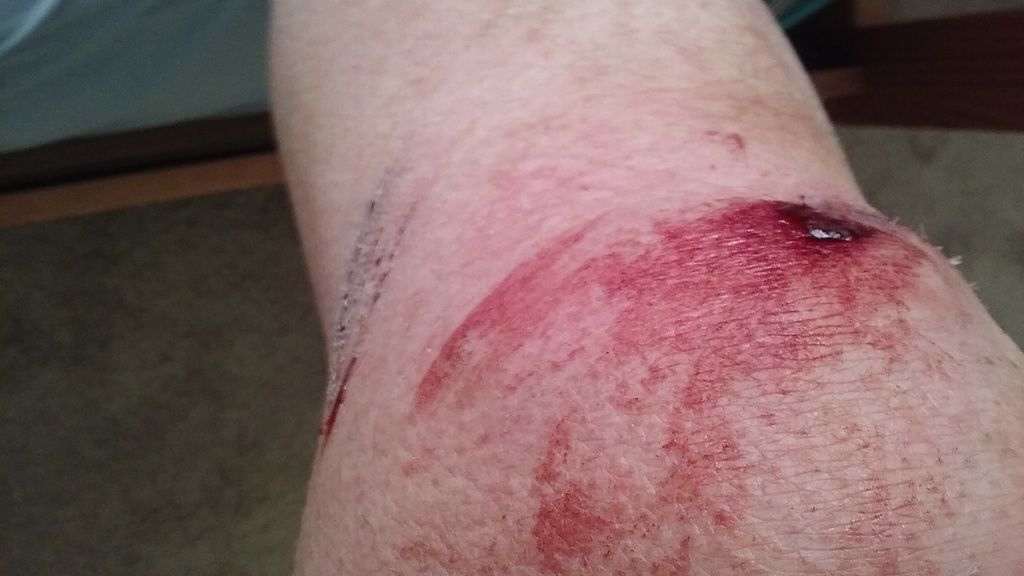 Crashed onto right side with elbow and knee coming into brutal contact with bush stumps hidden in the leaves.