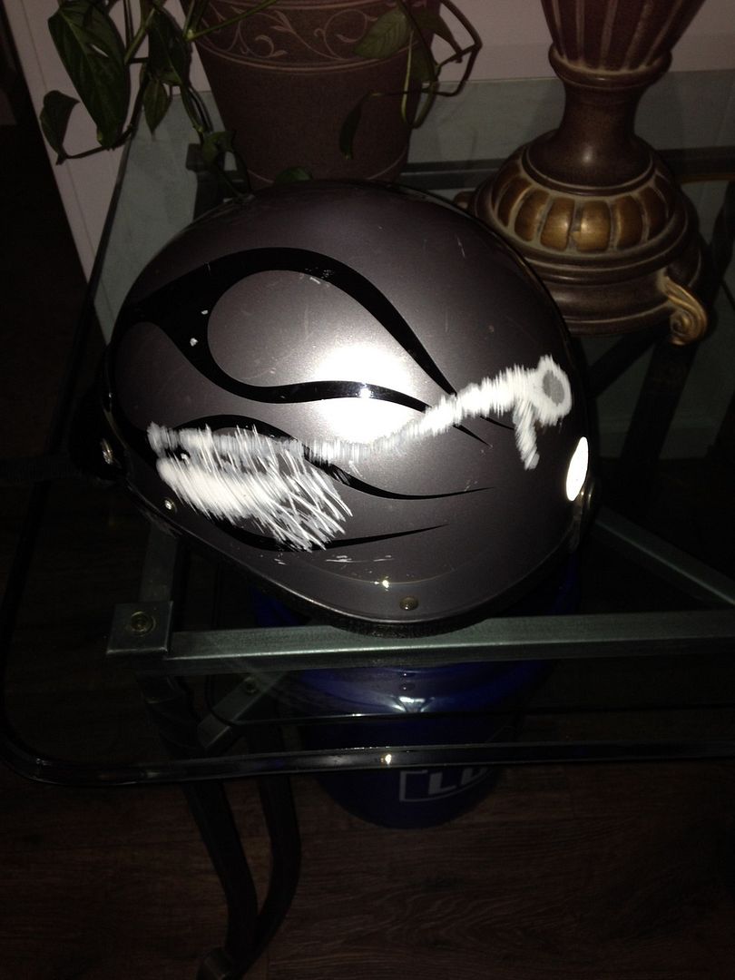 My helmet after a 30 MPH crash. Replaced it with another one just like it.