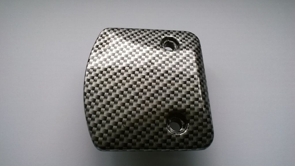 I'm in the process of doing a custom job on an old GSXR 400. While looking for inspiration I came across hydrographics which really interested me, so I decided to "dip" a few parts of the GSXR. On my valk, my cam end covers are starting to peel. I have some spare ones which were not chromed and in pretty poor condition. I thought I'd dip the spare ones and fit them while the others are away being re-chromed. Here's the end caps after dipping and clear coat. A couple of pics of the GSXR forks and fork brace. I'll be dipping the whole frame at the weekend.