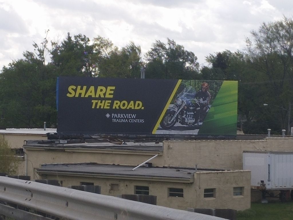 It's nice to be on a billboard. And the billboard has a good message in sharing the road. But I'd rather my bike was not the poster child for a trauma center. Bad Karma. Clearly, they should have used a crotch rocket.  They usually do use a crotch rocket on the signs. Have not seen the new ones as was posted above.
