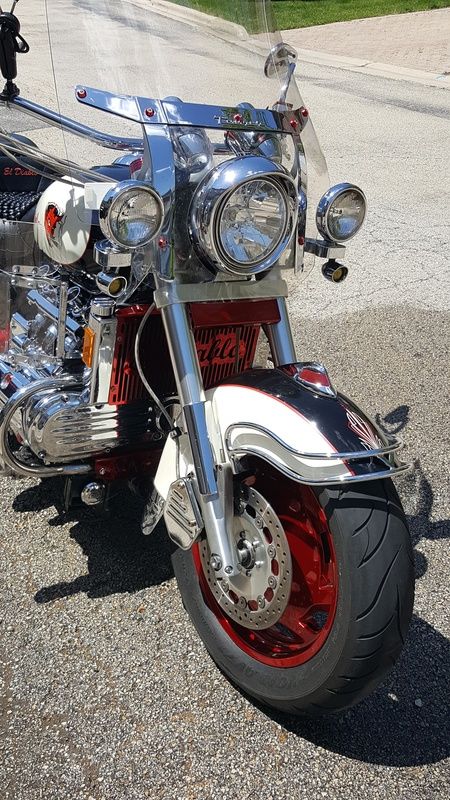 Even better than before  cooldude Do they powdercoat a candy red right over the chrome pieces ? I think the gas tank filler and chrome stacks would look real good also.  cooldude