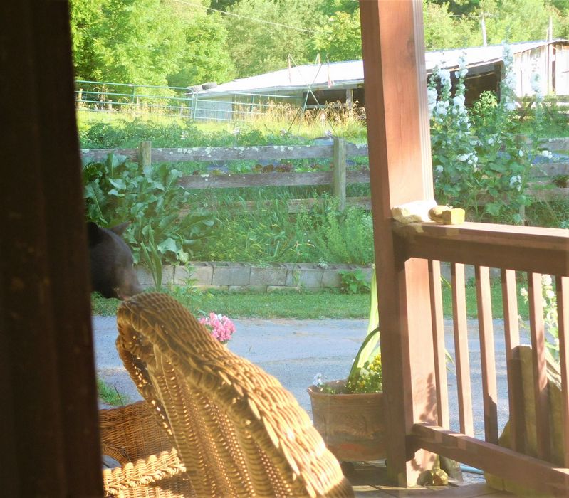 here he's coming around the front porch..