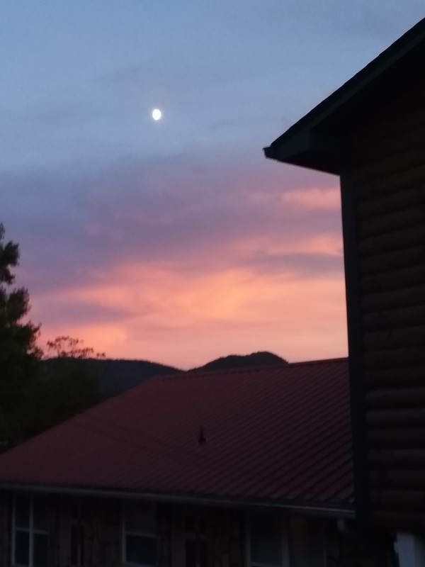 Cheesecake at the Tellico Plains cafe/bakery  Cherohala Skyway  Fire!  Moon over motel  A group of Valkyries always makes me smile