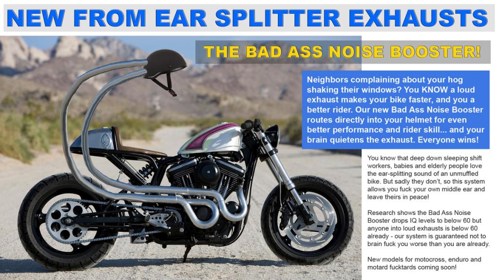 But.....since they only have 2 cylinders they have to make them just as loud as they possibly can and if that's not enough then add the most aggravating stereo system possible.
