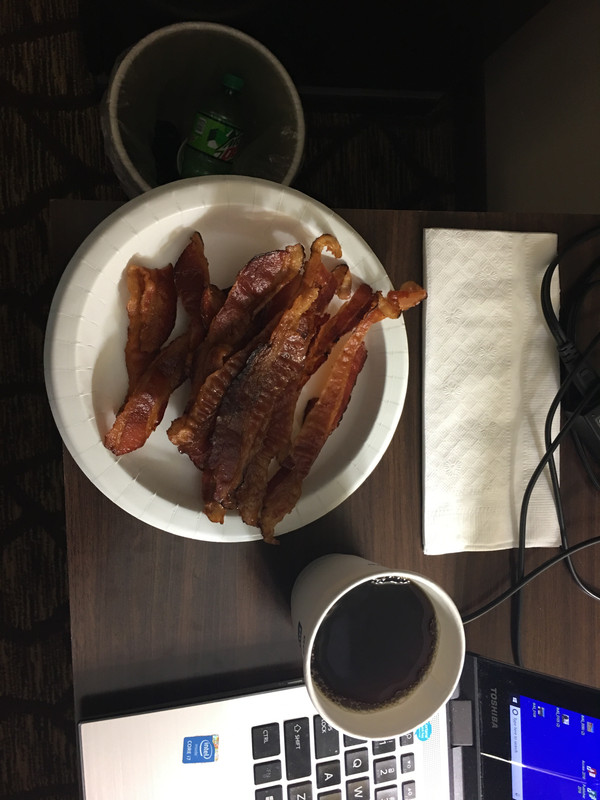 They say it’s better to be lucky than good. (That bacon is making me hungry)  Rob, I know what you mean, amigo!!! I was actually going to skip breakfast, because I have some left over stuff in the fridge... Since I was going by to get a cup a Joe anyway, I took a gander under the hood covering breakfast expecting to see the same scrambled eggs and sausage patties as the day before... Well, I nearly had an organism when I spotted you 'know what', so I did what anybody who knows me would expect... I would have taken more, but... others were watching, and I didn't want to appear any more glutenous than I already am... FWIW, it was quite tasty and well worth the scorn I did receive anyway! DDT