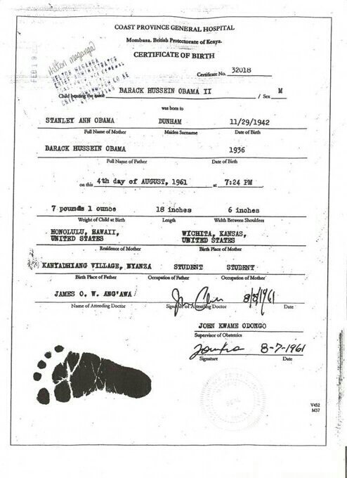 https://worldnewsdailyreport.com/kenya-authorities-release-barack-obamas-real-birth-certificate/and remember it was Hillary who originally exposed the facts that he wasn't born in america. Also he is not african american since his father and his family are not from america. his fathers family were slave traders and his mothers family were slave owners.