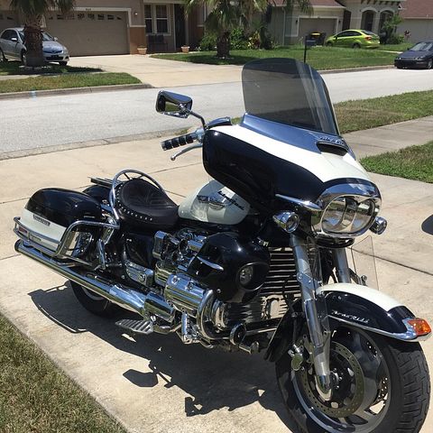 I was going to go with a the 1957 Chevy colors of Larkspur blue, and ivory, in a nostalgic Harley type theme, the tank sides would be all ivory instead of the scallop design the valk tanks have. With wide whitewalls of course/