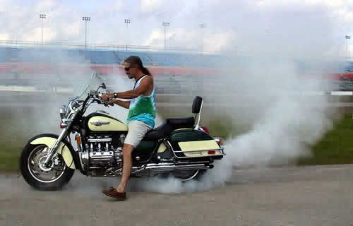 Never done the burn out thing and quite frankly, never understood anyone else doing it but, it's their bike and their tires. Only popped one wheelie on my Valkyrie and it was not intentional, had a guy on my butt for three lights in a roll. At the third light, I'd had enough and all I can say is the planets lined up and everything was just right. When I rolled around that turn and then twisted the throttle, up she came. Surprised the hell out of me but, I road it out and left the dirt bag in my dust. I don't make a habit of trying to do this but, always like seeing other's who have the skills show me what they can do. Me, I'm lucky to chew gum and walk at the same time.