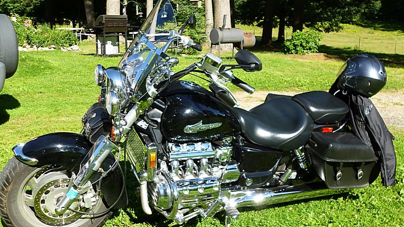 She had a lot of little personal touch extras I put on, the jack thingy under the frame, a wolo air horn, custom handlebar risers, black mirrors, handlebar clock and thermometer, handlebar powerport. 412 shocks, switchblade windshield, Rifle lowers, temp gauge on the dipstick, highway pegs, the stainless radiator grill a tool kit I made up in the round fork bag and also I put chrome top radiator trim and floorboards on since the photo. Only 2800 miles!  Al