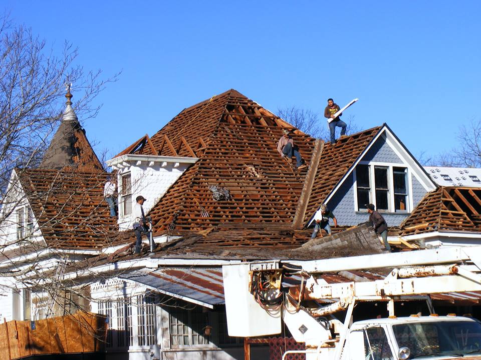 I've been working since last August to get the Old Vic re-roofed. Contracts. Insurance. Weather...finally...today...a dozen guys showed up and stole most of my roof...
