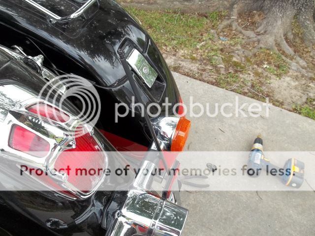 So I got a variable depth bit...and opened the holes up since no antennae would fit in it (just a hair too small). (oh, also installed new turn signal lens covers and had to get new bolts and nuts to tighten the rear light assembly back in). Once I got the hole opened up, I mounted an antennae and ran it to behind the right side cover and plugged it in).