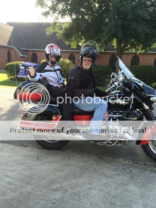 511 miles of warm, but not unbearable warmth. He never complained one time and always kept his safety gear on. He was awesome on the back of the bike. Never an issue getting on or off and didnt even know he was back there in the curves. Great rider and like I said, not a single word of complaint for 511 miles - not a bad 2 day mileage for a new rider.